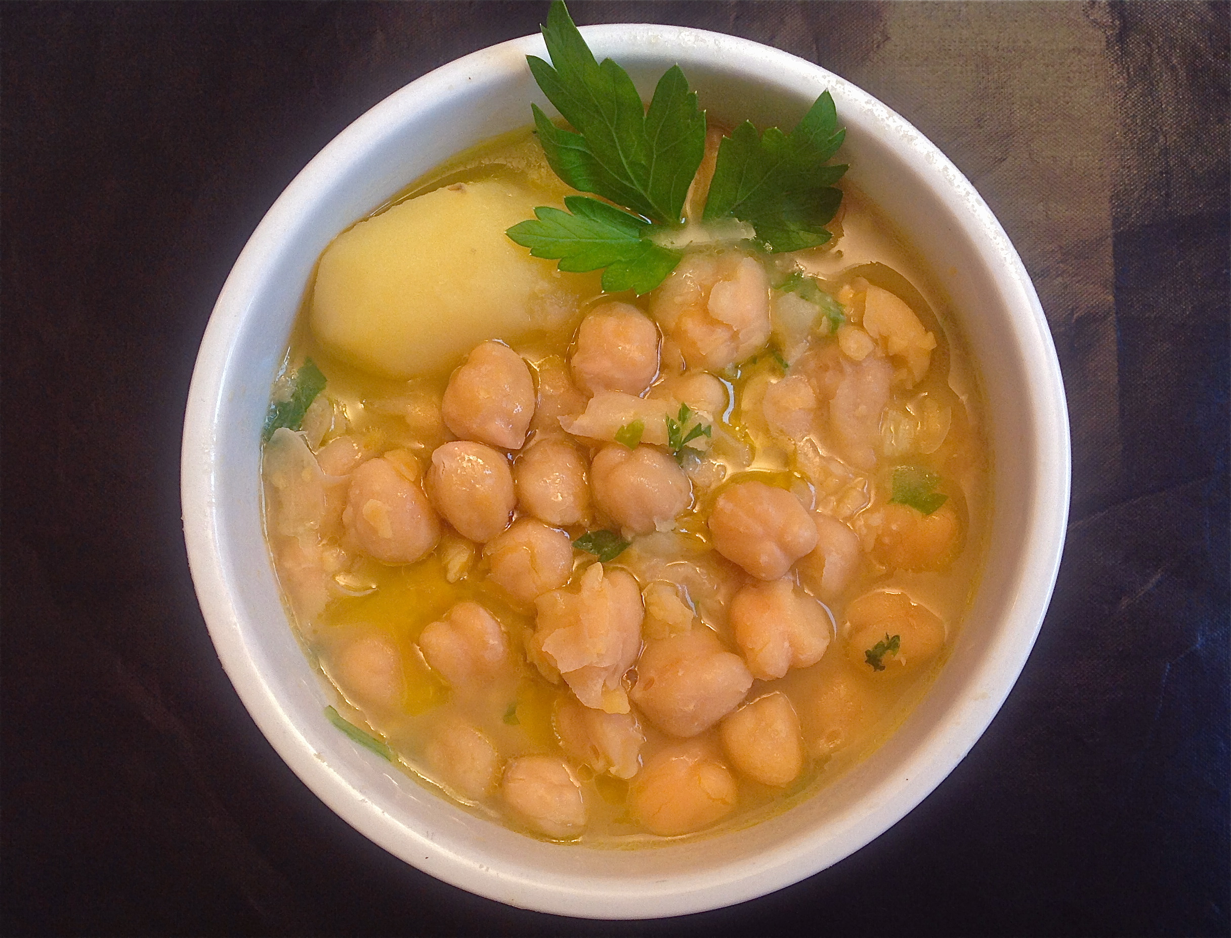 Hoy tenemos más legumbres, todo sea por salvar la dieta mediterránea. Estos humildes garbanzos tienen un nombre singular, pero es que los conocí así y es difícil cambiar la identidad de una receta, no vaya a ser que pierda el encanto.Los hacía mi suegra cuando no quería dedicarle mucho tiempo a la cocina y sabía que tendría el éxito asegurado. En invierno se toman calientes y en verano, a temperatura ambiente. Saben a hogar y te dejan el estómago contento, aunque no llevan ningún tipo de compañía animal . Si cuentas con buena materia prima, no se despellejarán durante la cocción y su digestión no te traerá problemas. Y si te sobran, al día siguiente estarán aún más ricos.