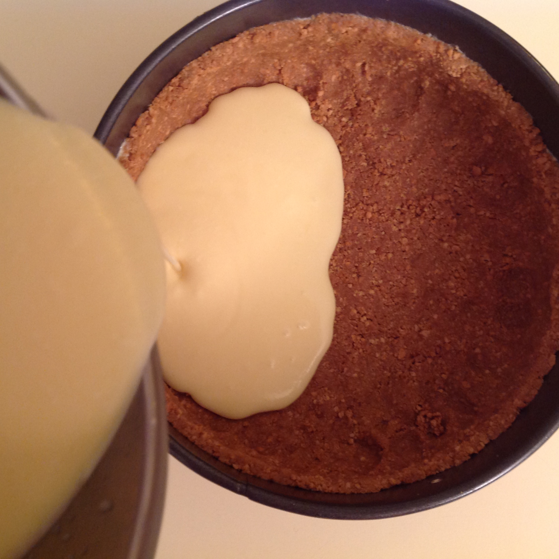 - Verterla en el molde con cuidado de no levantar la base de galleta: