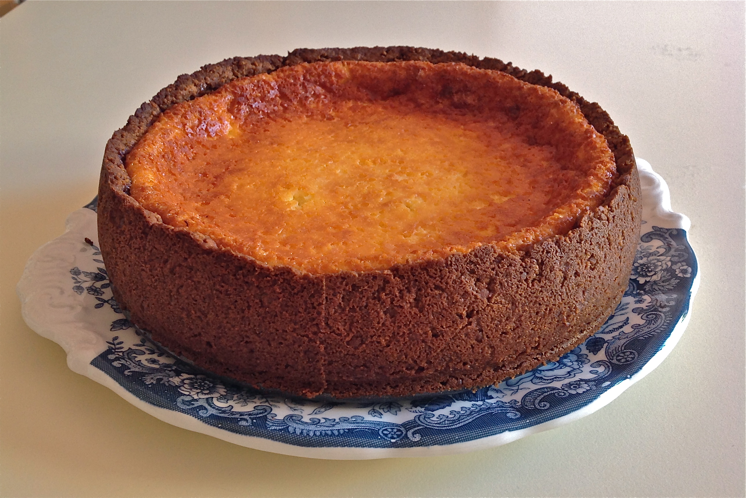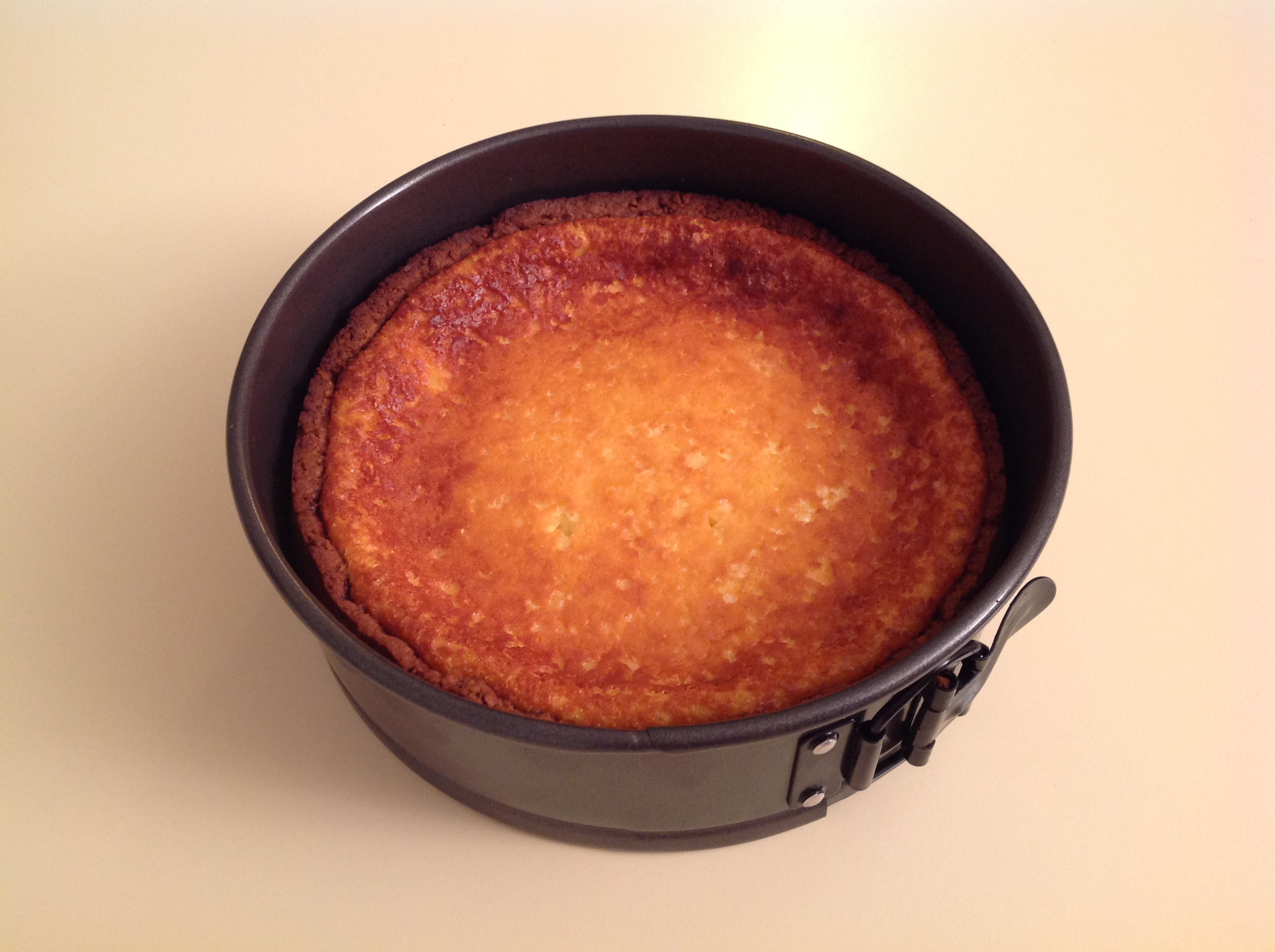 Esta receta es una pequeña variación de la tarta de queso que aparece en el librito de Helados, Sorbetes y Postres de Anne Wilson. En lugar de utilizar queso tipo Philadelphia lleva requesón y no le puse pasas. Sin embargo, me apetecía darle un toque profundo a la base de galleta y le puse unas cucharaditas de ron. Puedes utilizar cualquier variación con éxito y es difícil que salga mal si cuidas el proceso de horneado.