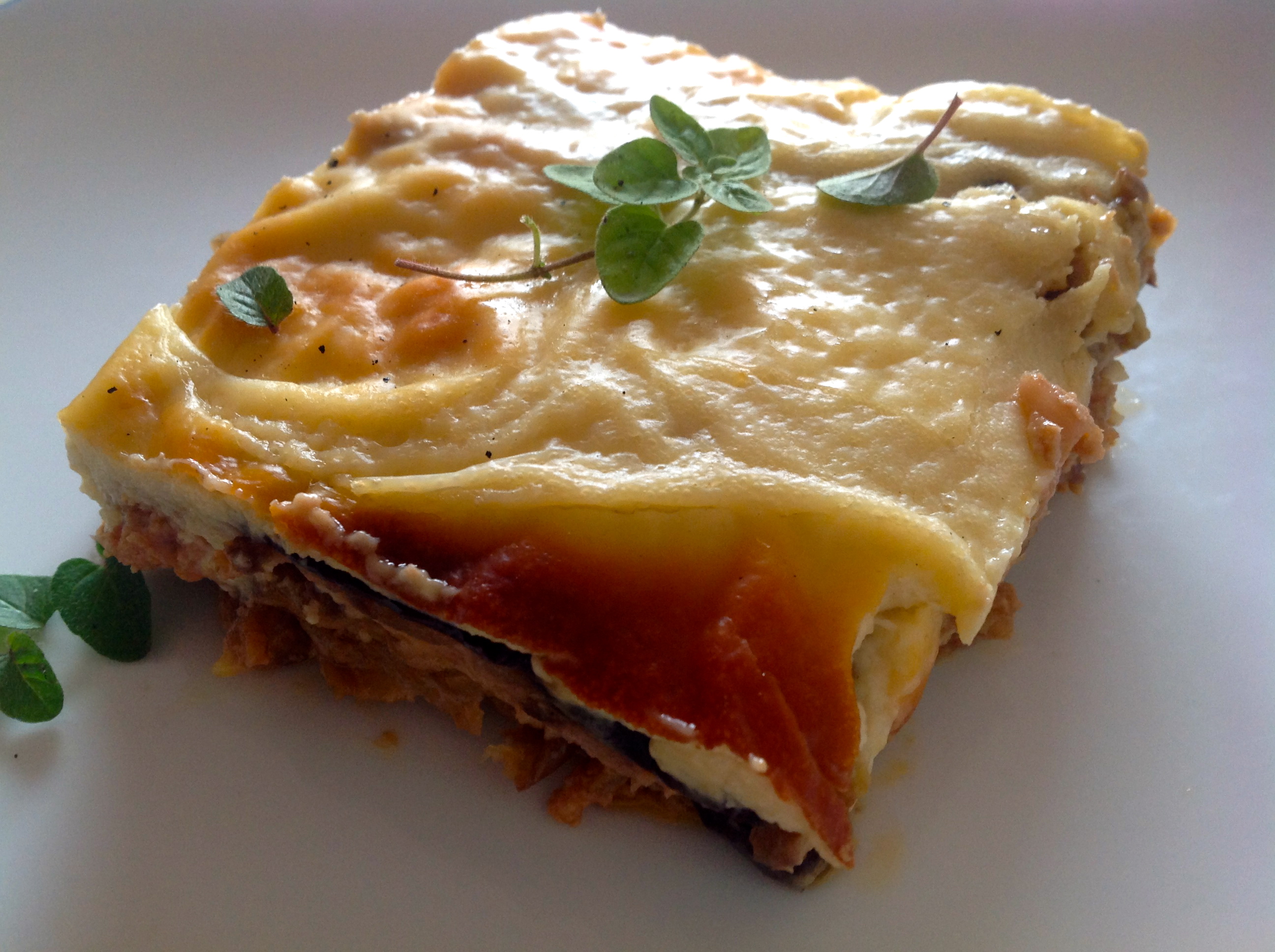 ¡Qué buena pinta¡ Lo de la primera capa horneada, me gusta porque es cierto que al freir las berenjenas chupan todo el aceite. Y lo de buen provecho en griego… ya es la guinda.