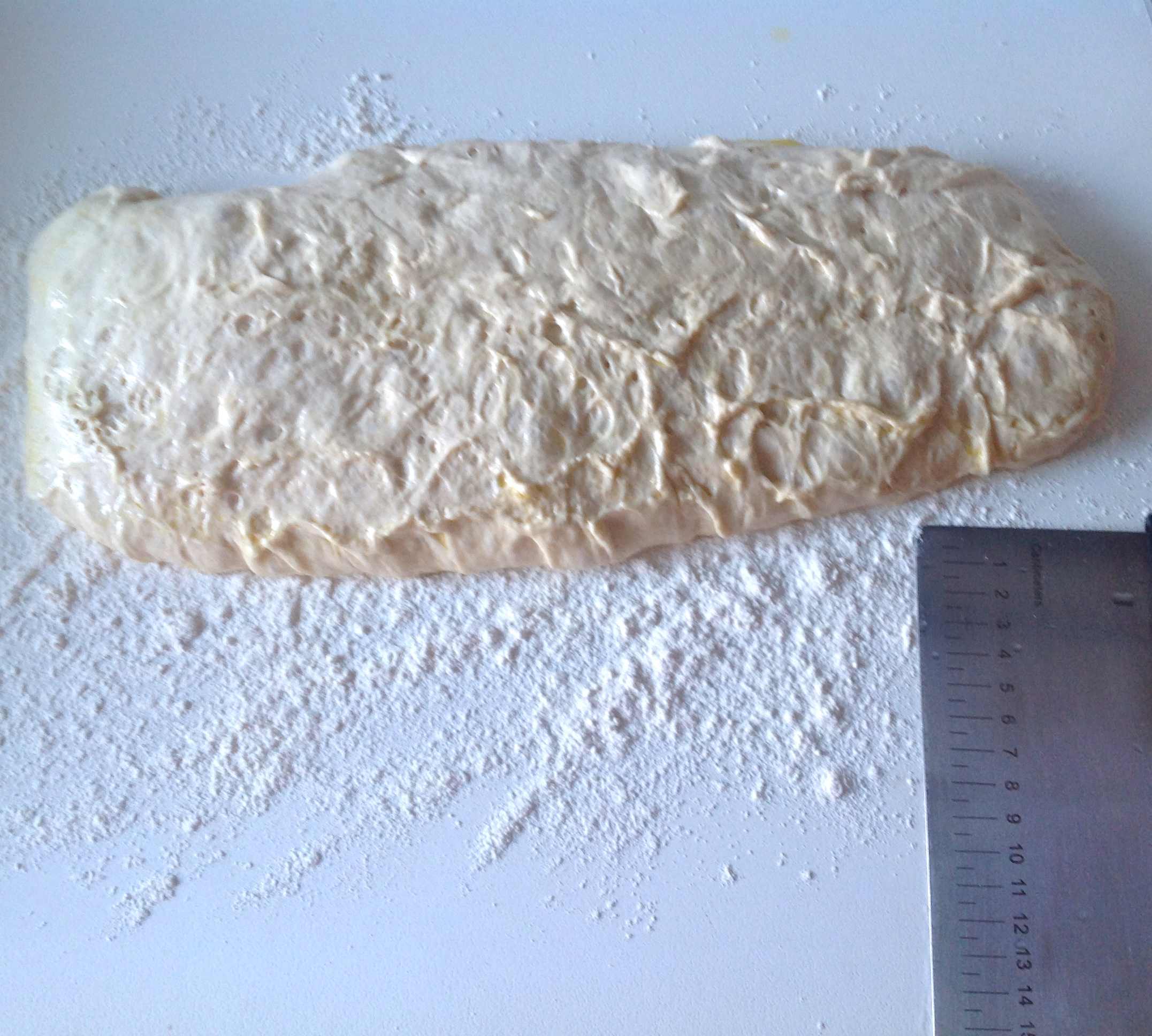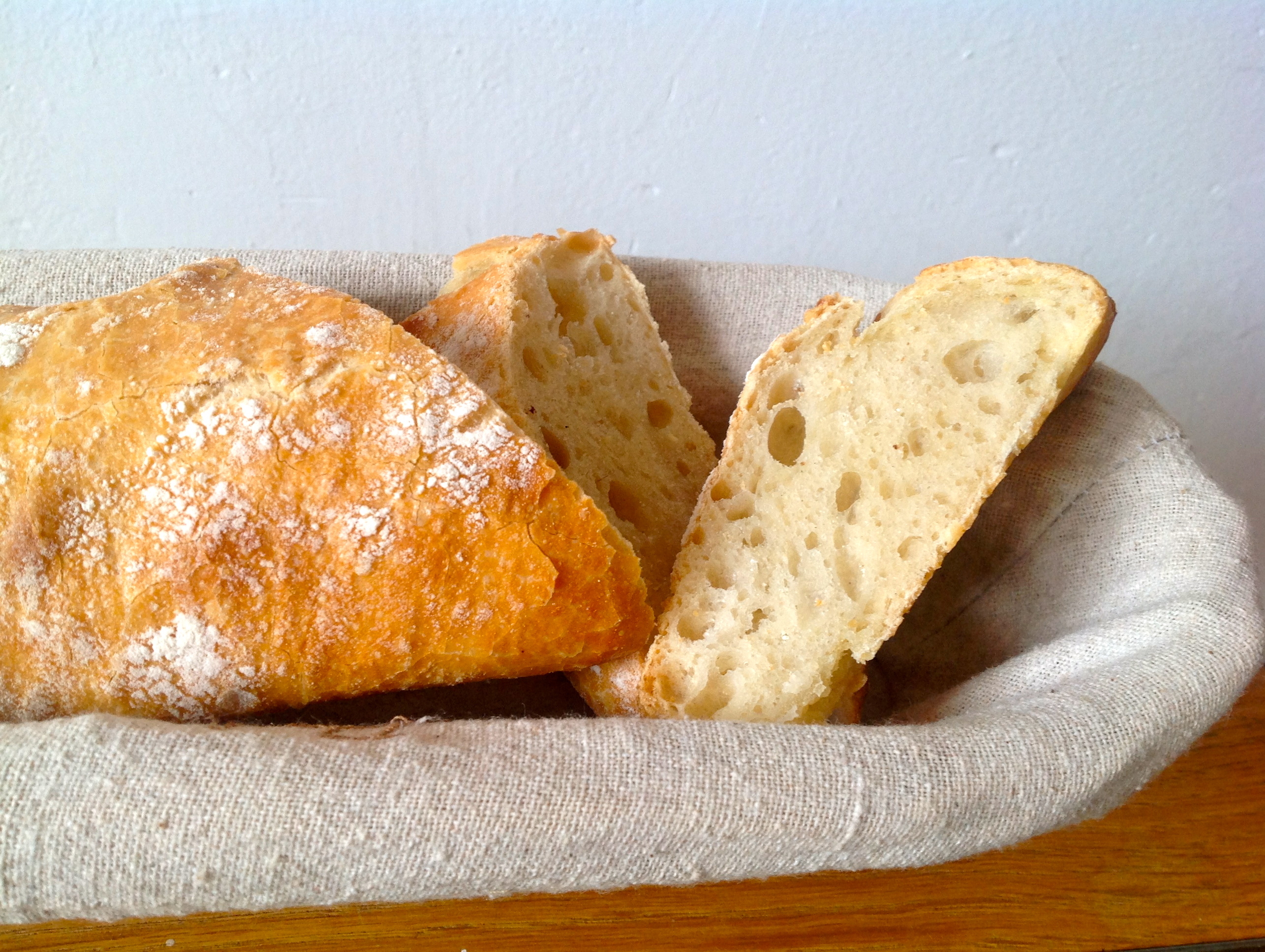 Esto de hacer pan sin tocarlo lo aprendí en La Cocina de Babette, con Bea, y también a distancia con Iban Yarza (El Foro del Pan). Empiezas así, con un pancito que no te da trabajo y acabas haciendo tu propia masa madre y probando con distintas harinas e ingredientes. Pues buscando un pan tipo chapata que fuera facilón y que diera aire a la masa madre que me había sobrado, conseguí esta fórmula que de puro sencilla casi se cae. Por si acaso eres un panarra aficionado te diré que la hidratación es al 80% e incluyo la versión con masa madre, pero para el resto de los humanos incorporo la levadura de panadero, seca o fresca, como la venden ahora en muchos supermercados.