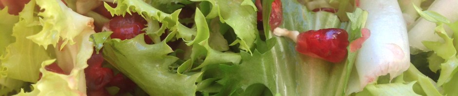 - Mientras tanto, preparar la ensalada lavando la escarola y desgranando la fruta. Mezclar en un bol y aliñar con una vinagreta suave hecha con el aceite de oliva, la sal y el vinagre de manzana.