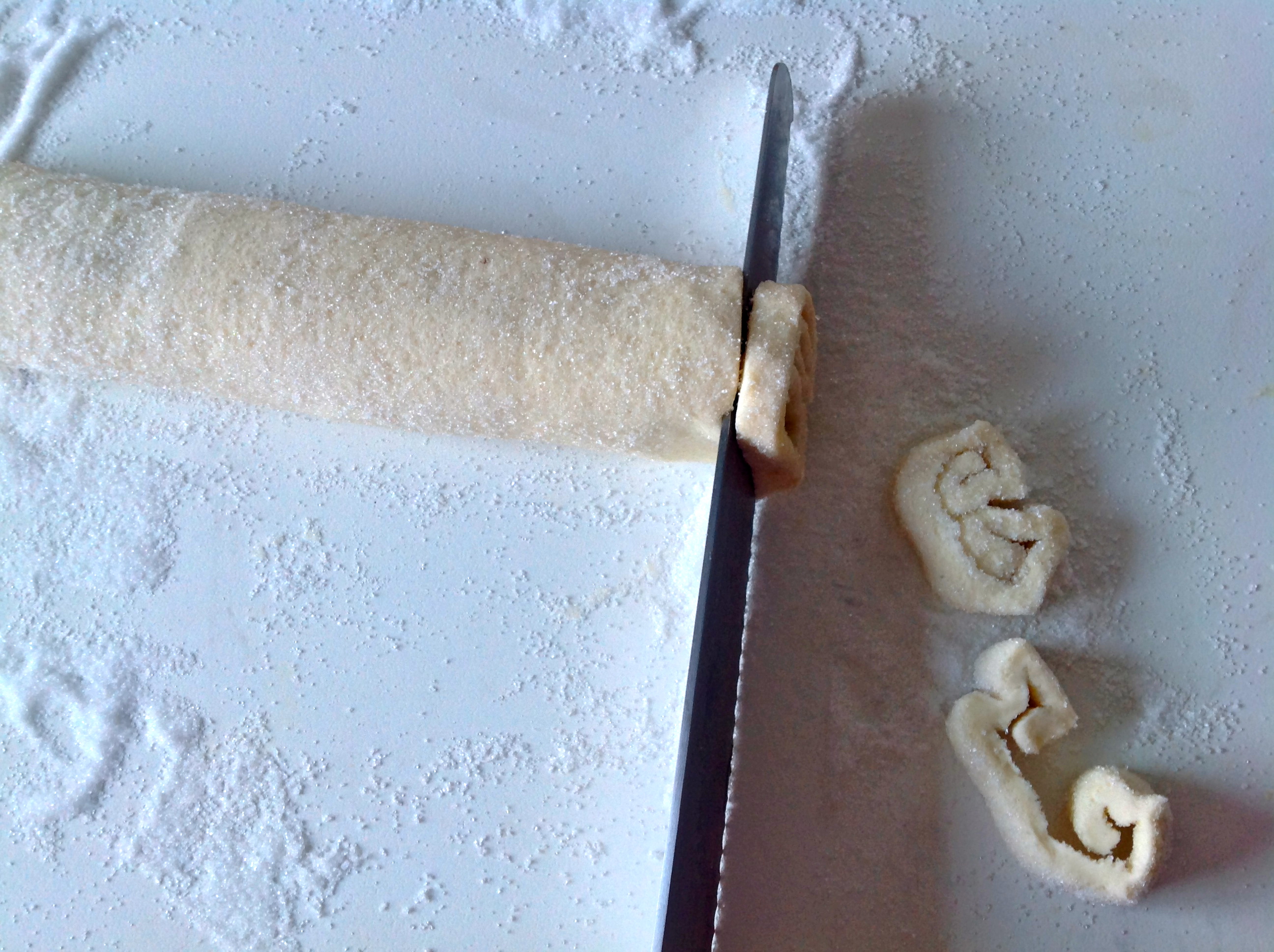 Pero como este recetario está dirigido a cocineros principiantes, apresurados e impacientes, pues traigo la versión con masa de hojaldre comprada (sin grasas hidrogenadas, por favor). Con un poco de azúcar y media hora creativa tendrás una bandeja de palmeritas de primera. Observa, observa…