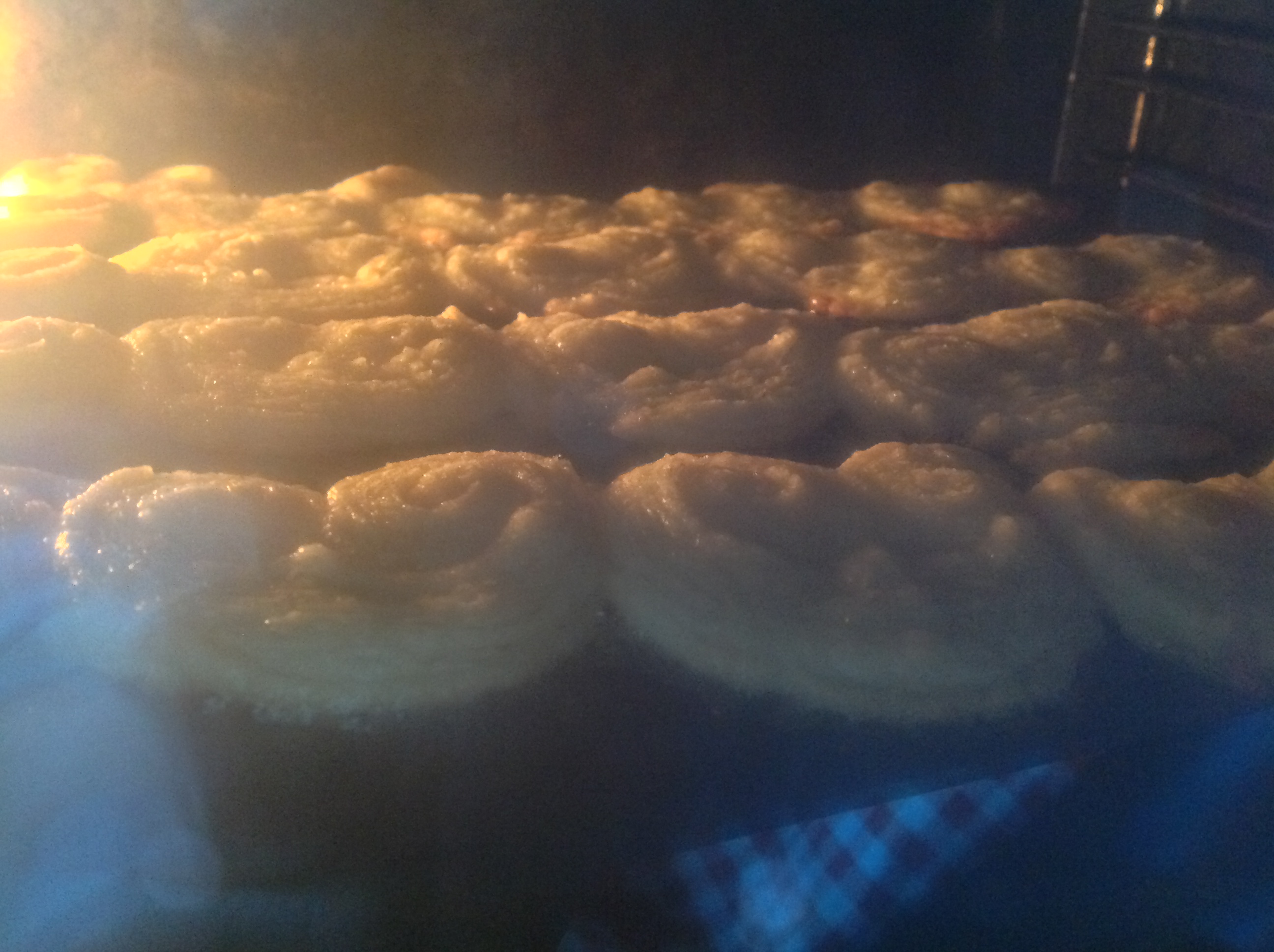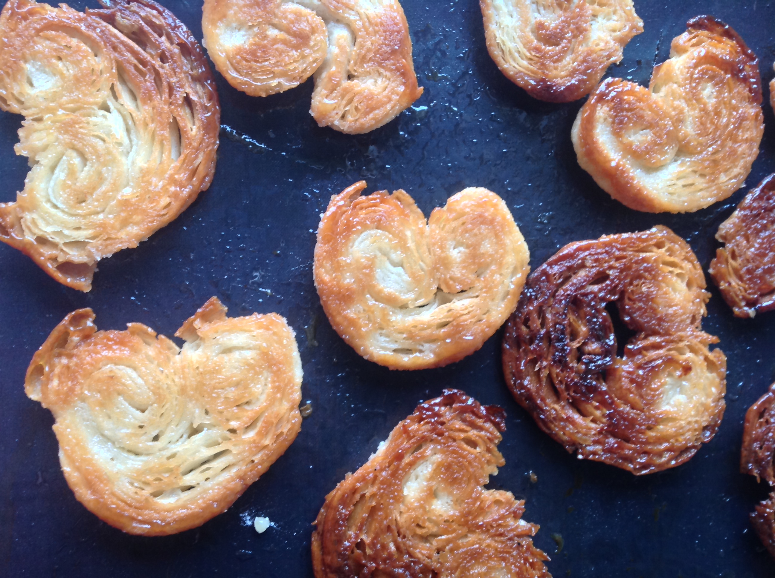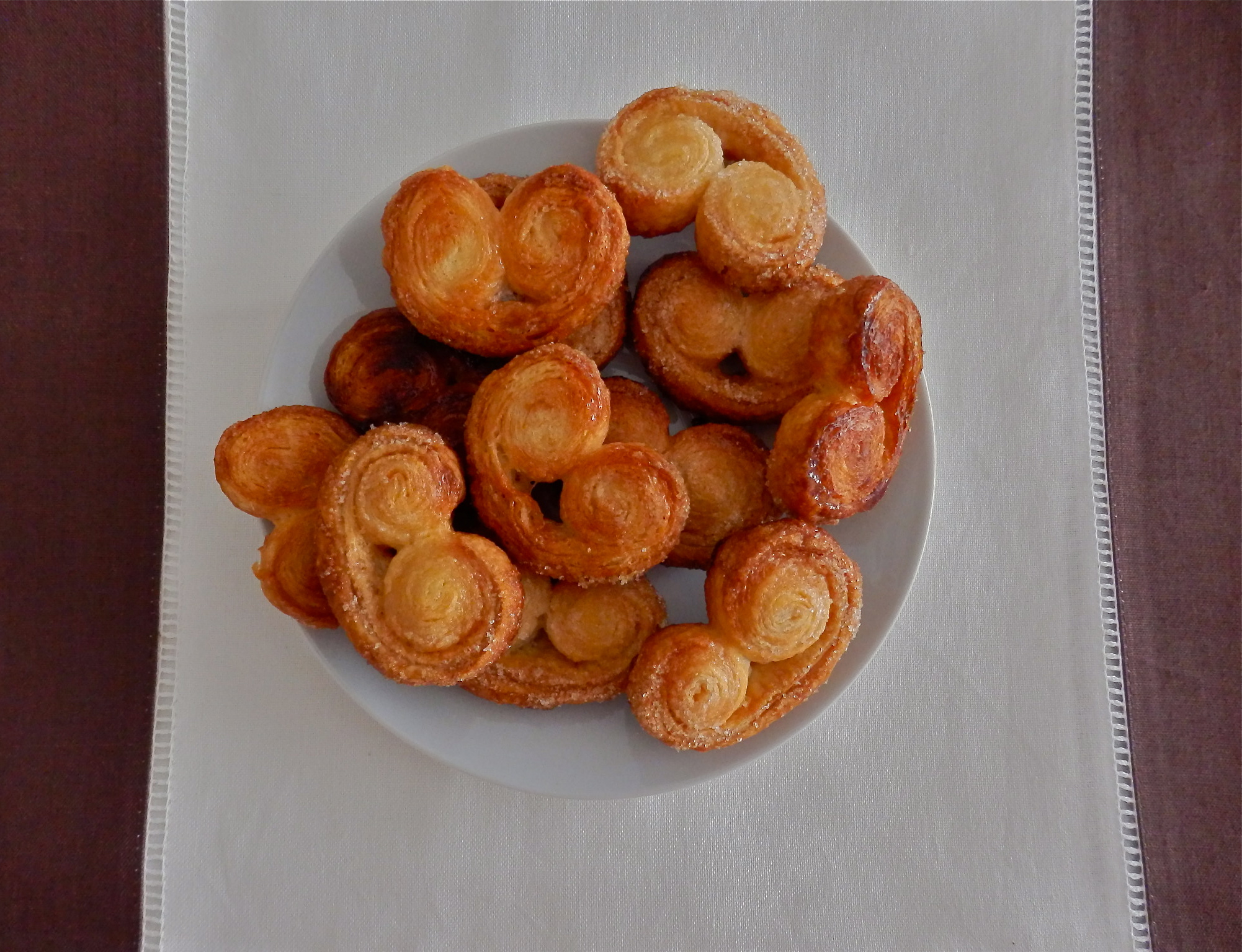 Ya sé que acabamos de pasar una temporada de excesos pasteleros y que deberíamos pensar en algo ligero, pero es difícil resistirse a estas encantadoras palmeritas de hojaldre. No dan trabajo alguno, a menos que te decidas a elaborar el hojaldre casero. Yo lo hice según la receta de myeuropeancakes, que es una maravilla cómo lo explica Luis y lo bien que sale.