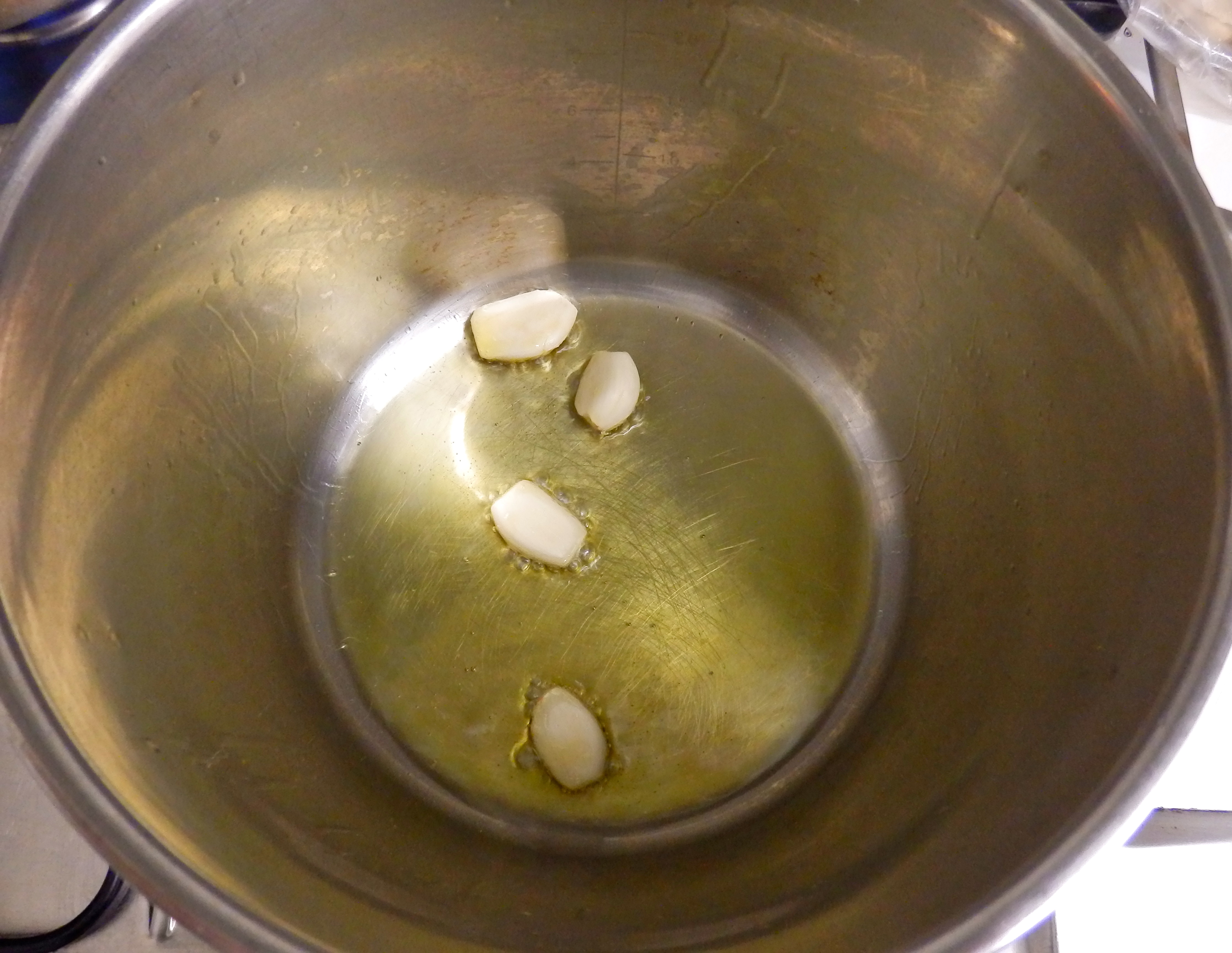 - Poner a calentar el aceite en una cazuela y dorar los ajos