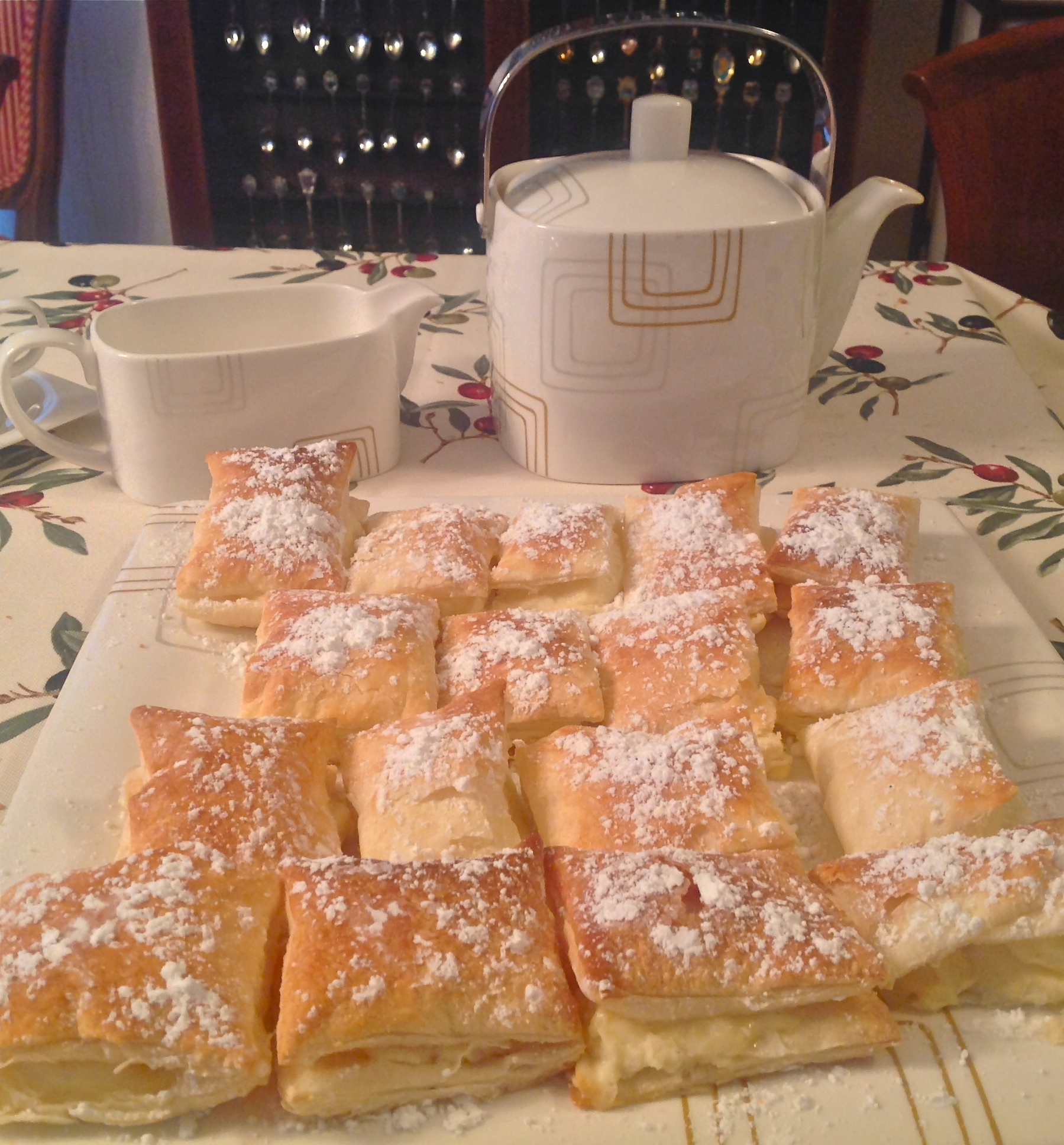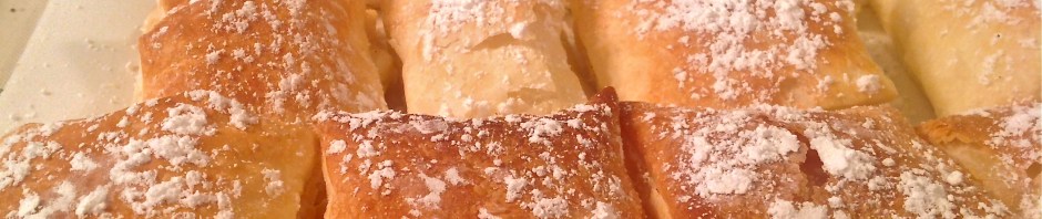 Eso pensé yo cuando se los vi a hacer a mi cuñada Marga. Así, rapidito, mientras preparábamos la mesa para comer, sacó la masa de la nevera, la extendió, la cortó en cuadradillos, la metió en el horno y ¡hale hop!, salieron los hojaldres. Bien es verdad que tenía prevista la crema pastelera, pero creo que no tardó ni dos minutos en abrirlos, rellenarlos y colocarlos así de bonitos para espolvorearlos de azúcar impalpable. Después del café no quedaba ninguno en la bandeja.