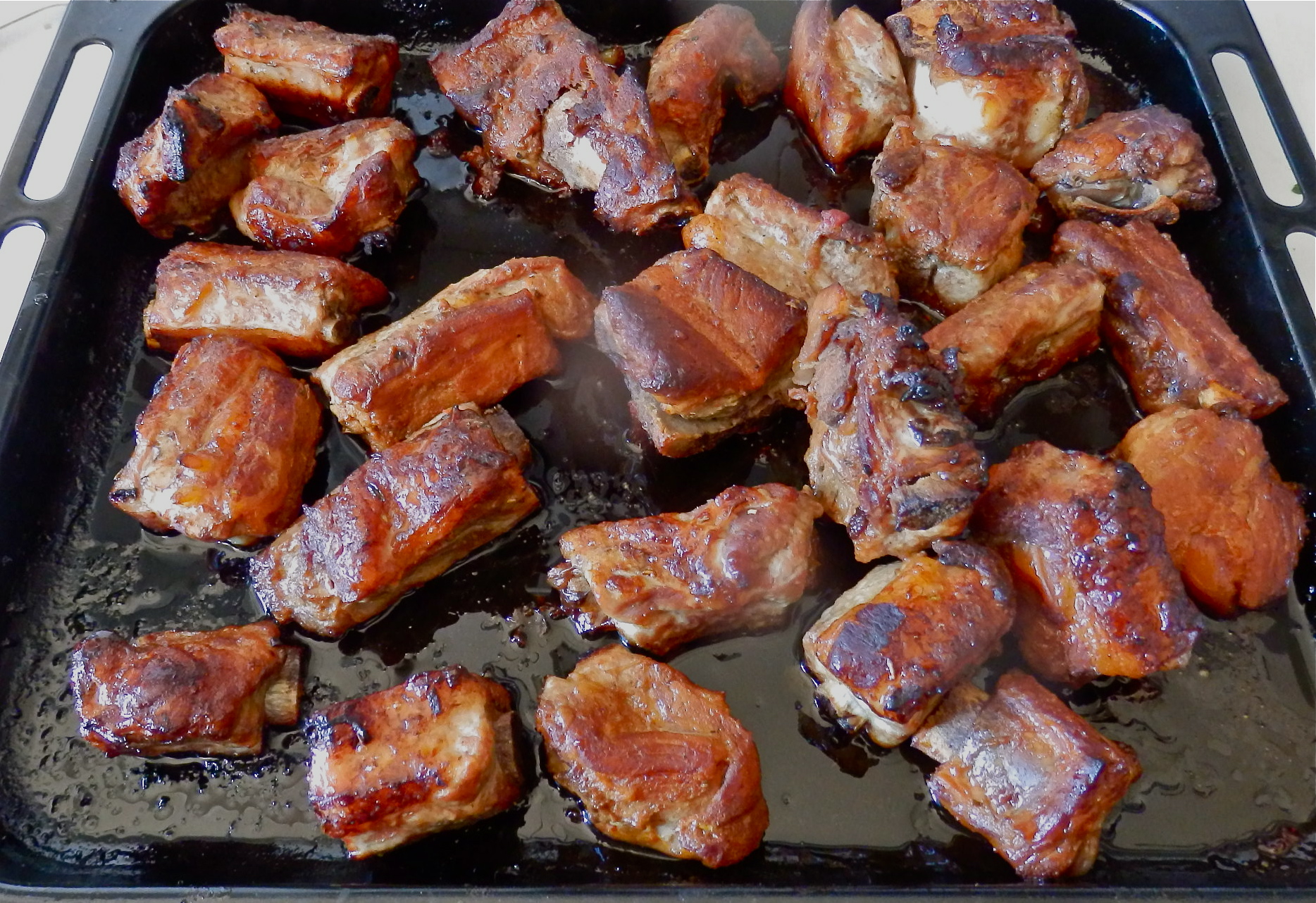 - Asa durante unos 45-50 minutos más, regando de vez en cuando las costillas con el jugo que desprenden.