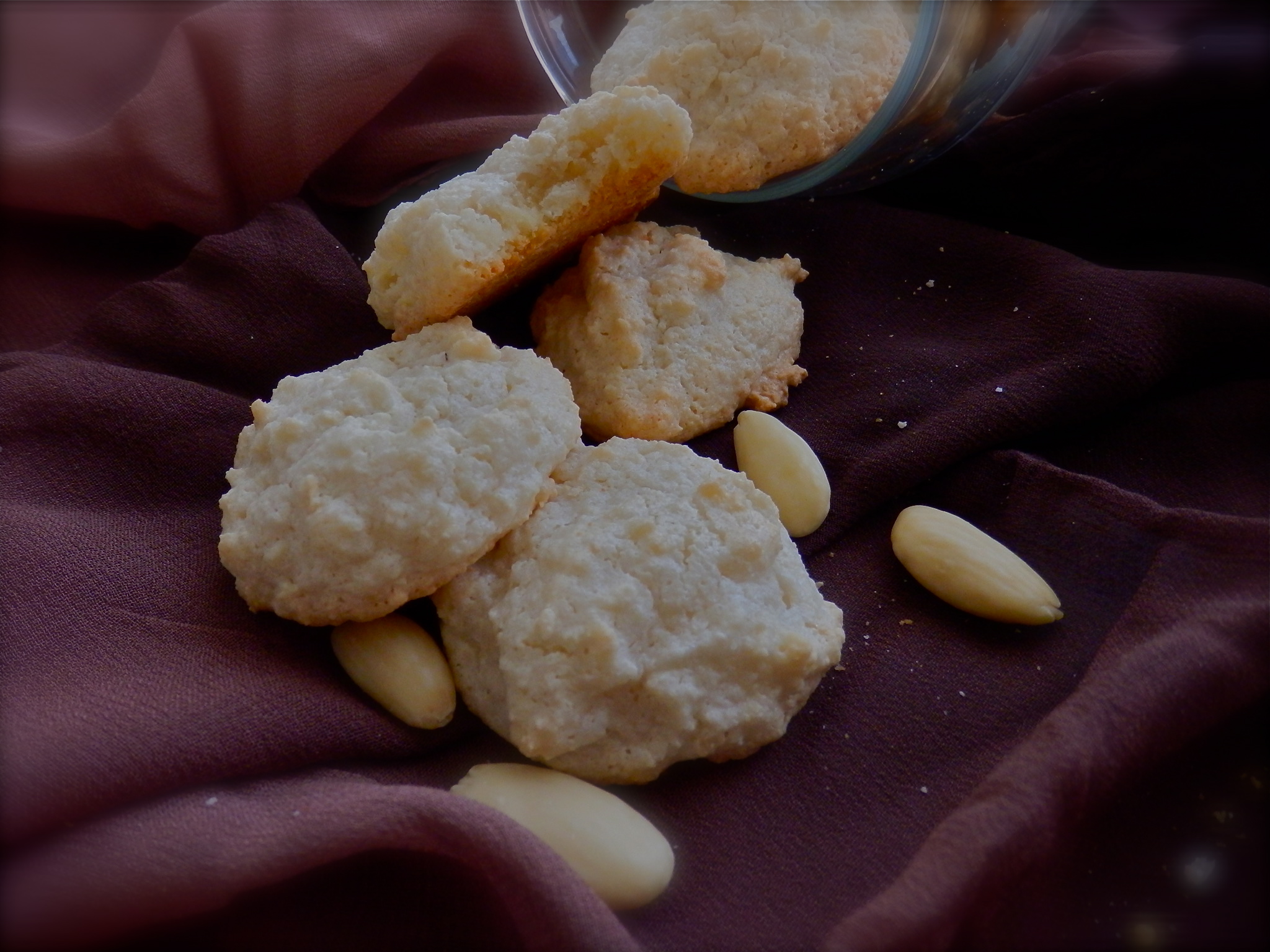 Como se puede apreciar, son crujientes por fuera y tiernos en su interior. Son especialmente rápidos de hacer, pues solo exige moler el azúcar con las almendras y añadir las claras de huevo. Yo aproveché que tenía el horno caliente para sacar adelante unas almendras que no tenían mucho sabor y que se convirtieron, por obra y gracia de la molienda y el calor, en bocaditos perfectos para acompañar el té.