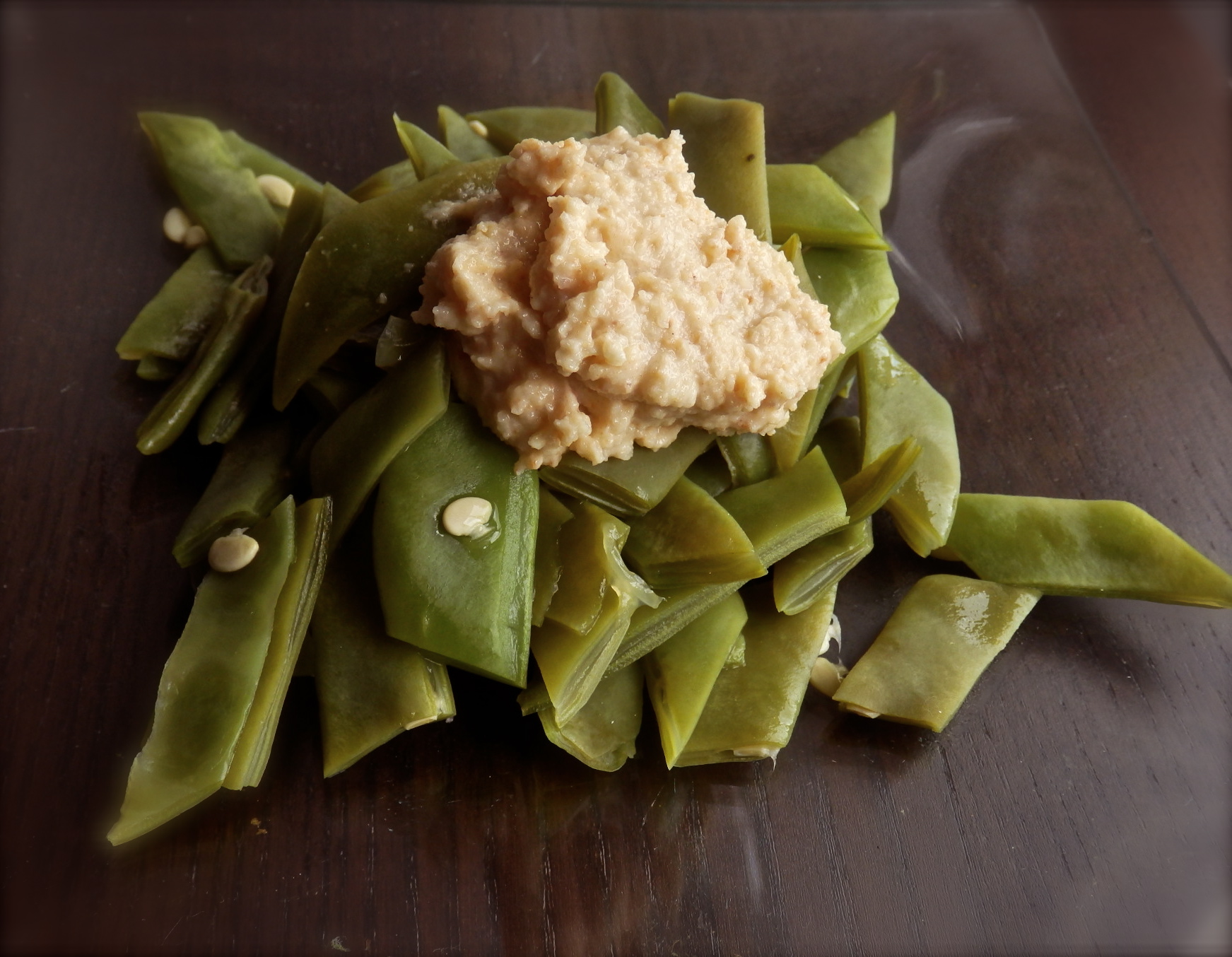 El único problema es que no sabía yo cómo se hacía el ajoblanco salsero, pues la receta de sopa de almendras avinagrada que había intentado con tan poco éxito en otras ocasiones no se parecía en nada al mojo denso, profundo y revitalizante que probé con Víctor y Elsa aquella vez. Un par de fracasos más y conseguí esta salsa espesa que encaja de maravilla con las judías verdes, jugando al contraste de texturas entre la verdura y la almendra, la acidez del vinagre y la dulzura de las judías, el picante rabioso del ajo frente a las plácidas verduras deshilachadas. Si no lo pruebas, te parece increíble. Si lo pruebas, también.