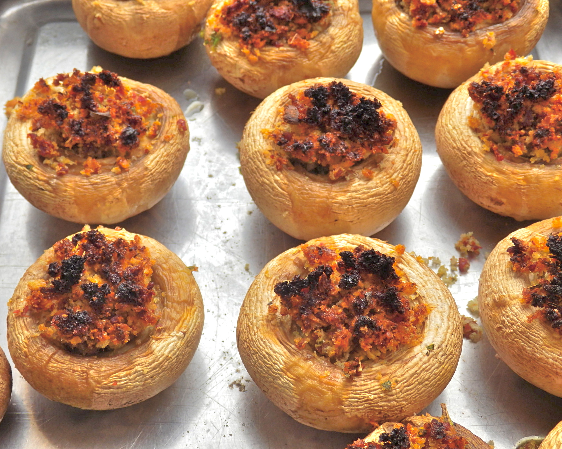 El éxito radica en mantener la humedad natural de los champiñones, para lo cual deben ser frescos y grandes y su paso por el horno no debe dejarlos agostados. Quedarán tiernos y jugosos, atrapando el sabor de la carne y los aromas del aderezo.