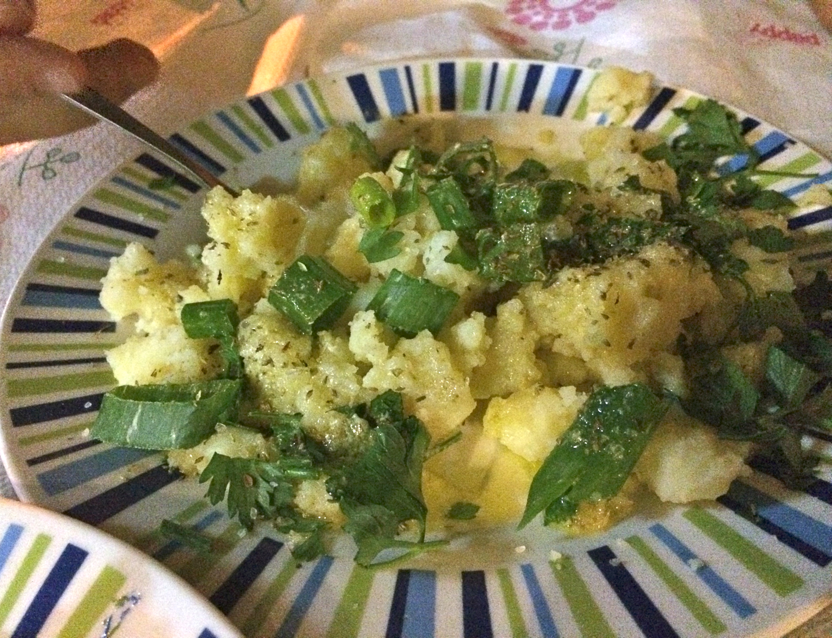 Para qué decirte que me quedé en los entrantes (madre mía, cómo pueden beber semejante fuego como si nada) pero disfruté de los segundos y terceros que trajeron para mis amigos. Y me quedé prendada de esta sencillísima ensalada que no duró nada cuando la preparé ya en casa: ligera, sabrosa y sutil como jamás imaginé pudieran dar de sí unas patatas.