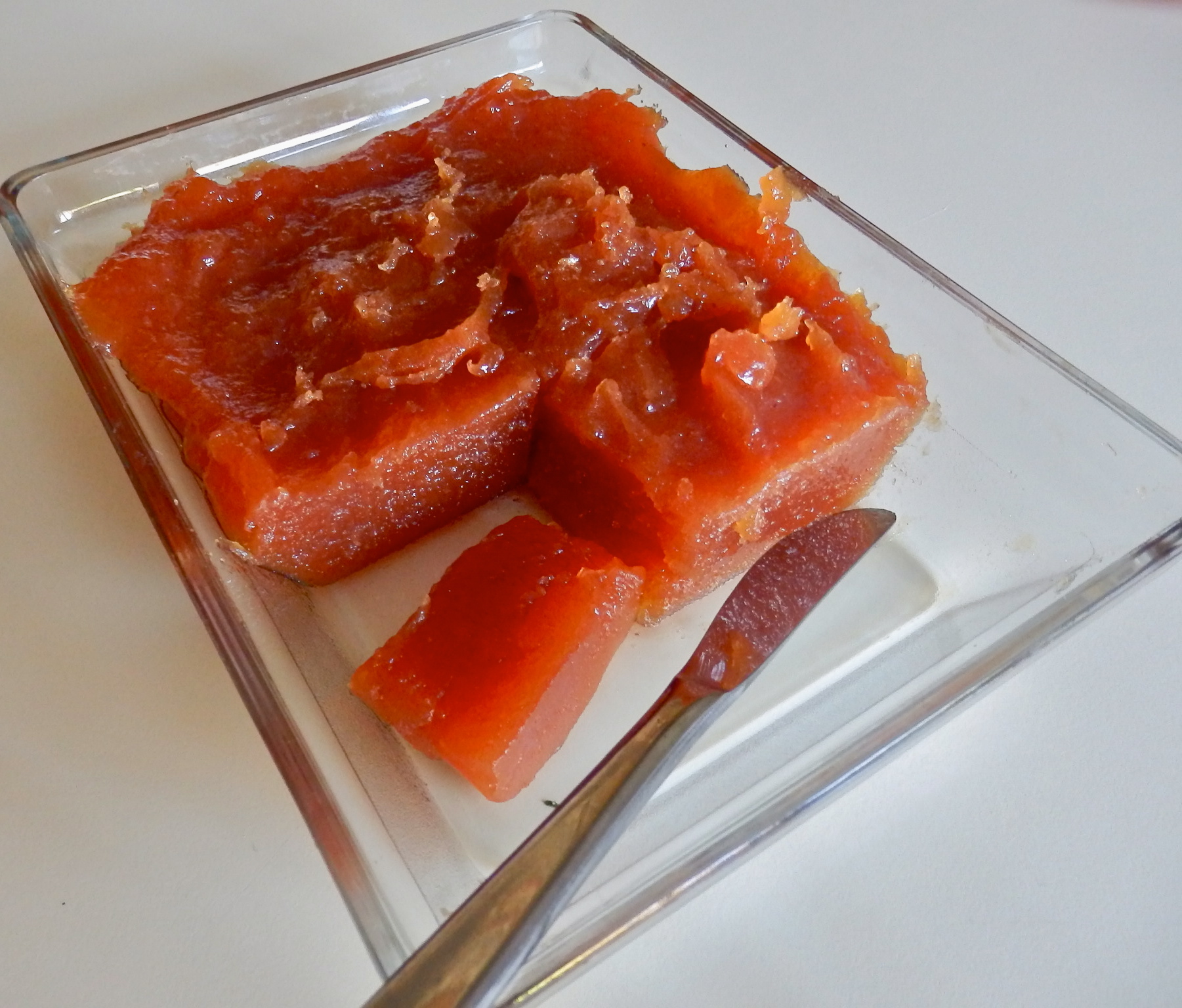 Esta receta me la pidió la madre de Sergio, que le gusta el membrillo que hago. Hay otras maneras de hacerlo pero casi todas más laboriosas. Mi madre lo preparaba por toneladas y la única diferencia con su receta es la moderna cocción en la olla a presión. Ah, ¡no tires el líquido que queda, con él se prepara la mejor de las jaleas!