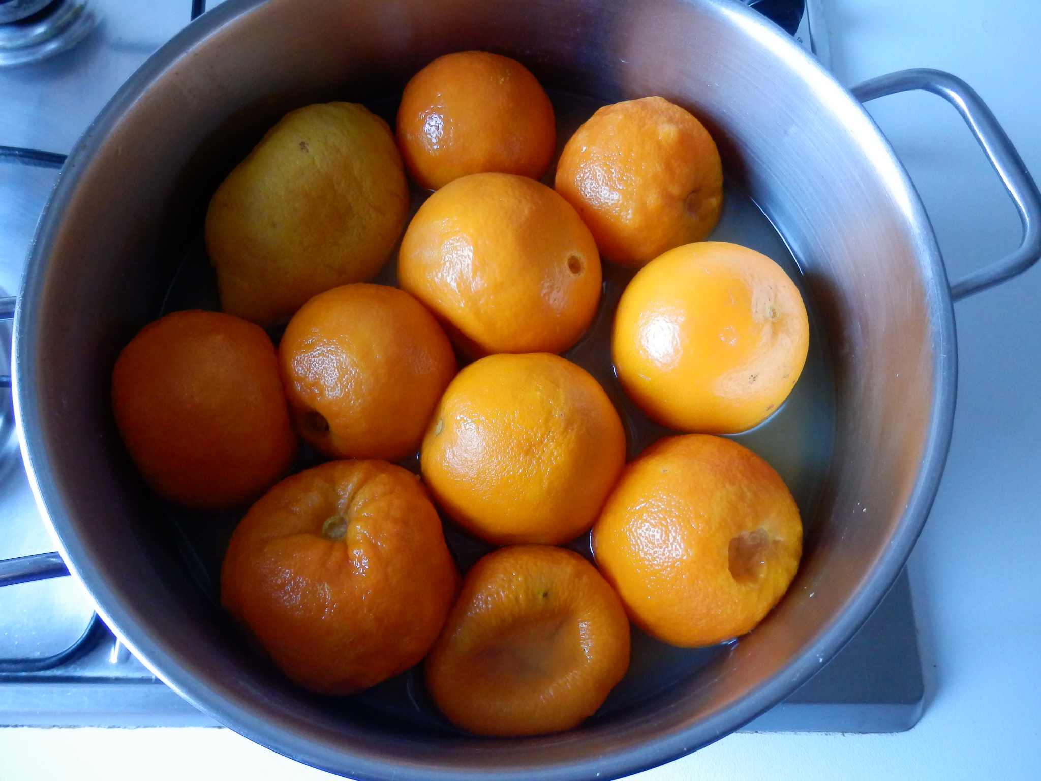 Hacía mucho tiempo que no preparaba esta mermelada porque no siempre resulta fácil encontrar naranjas amargas. Ya me da pudor ir robándolas de los árboles tan bonitos que adornan tantos pueblos andaluces. Asi que vi el cielo abierto cuando mi vecino Juan José me descubrió el precioso naranjo que tiene plantado en el parterre de su bloque. Oculto por una torre de electricidad, que a la vez le protege de las heladas, ha crecido un inmenso naranjo que se llena de fruta en esta época.