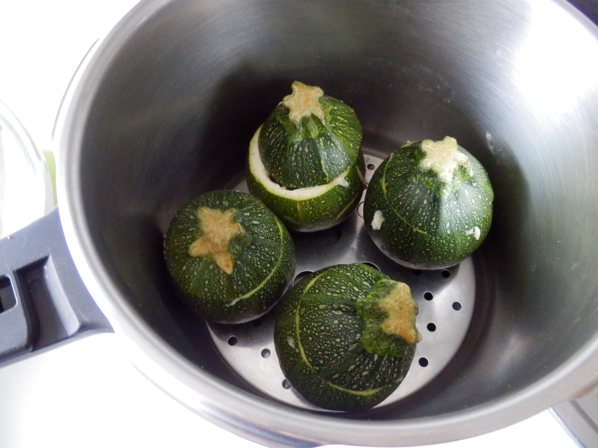 Por ese motivo, los tiempos de cocción que señalo son aproximados. Según sea la textura del calabacín, (su edad, vamos, que también a los vegetales se les nota el tiempo que llevan fuera de su lugar de nacimiento), necesitarás cocerlos más al vapor o en el horno convencional o en el microondas. Todo sirve.