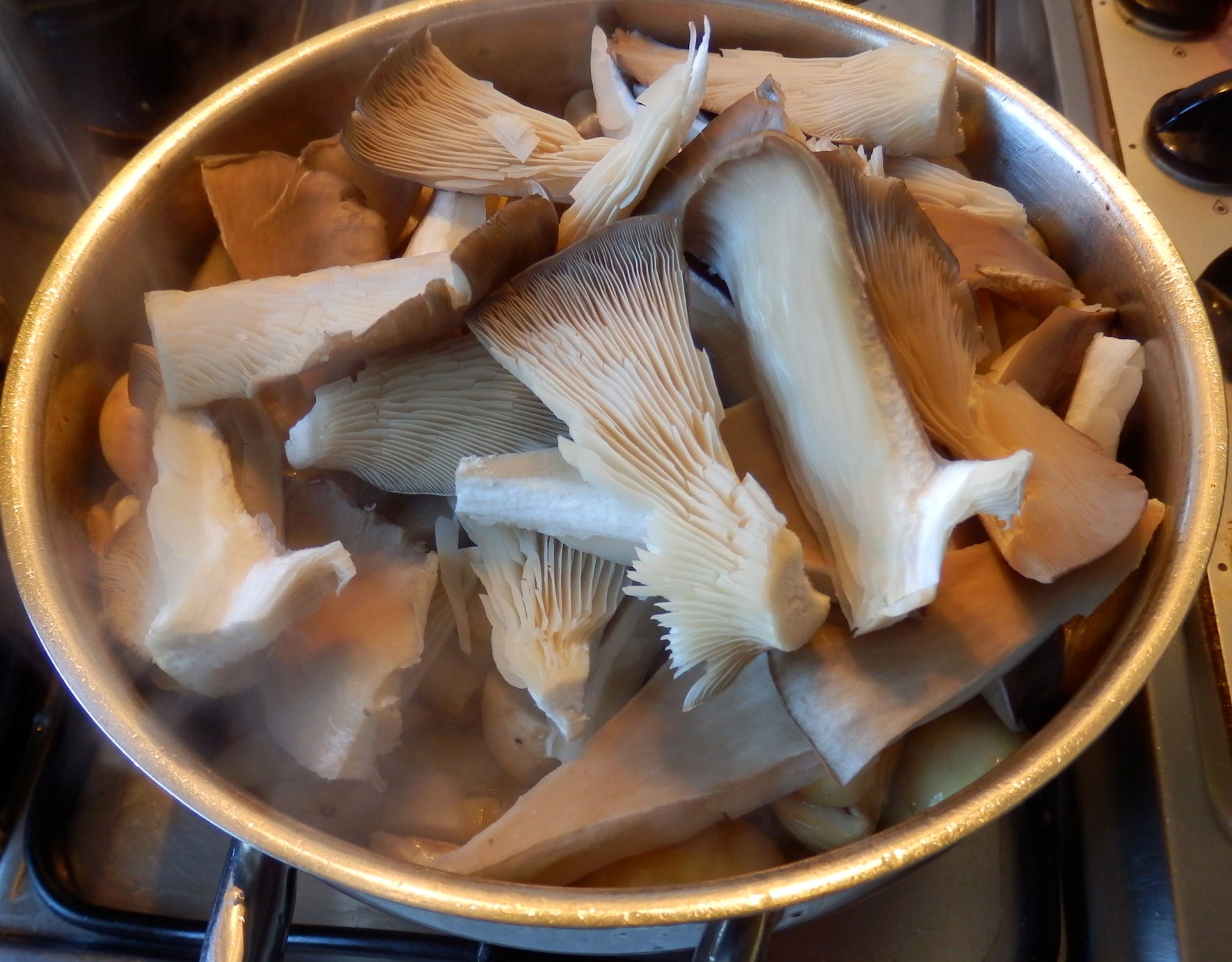 - A los cuatro o cinco minutos, añadir las setas despedazadas con las manos.