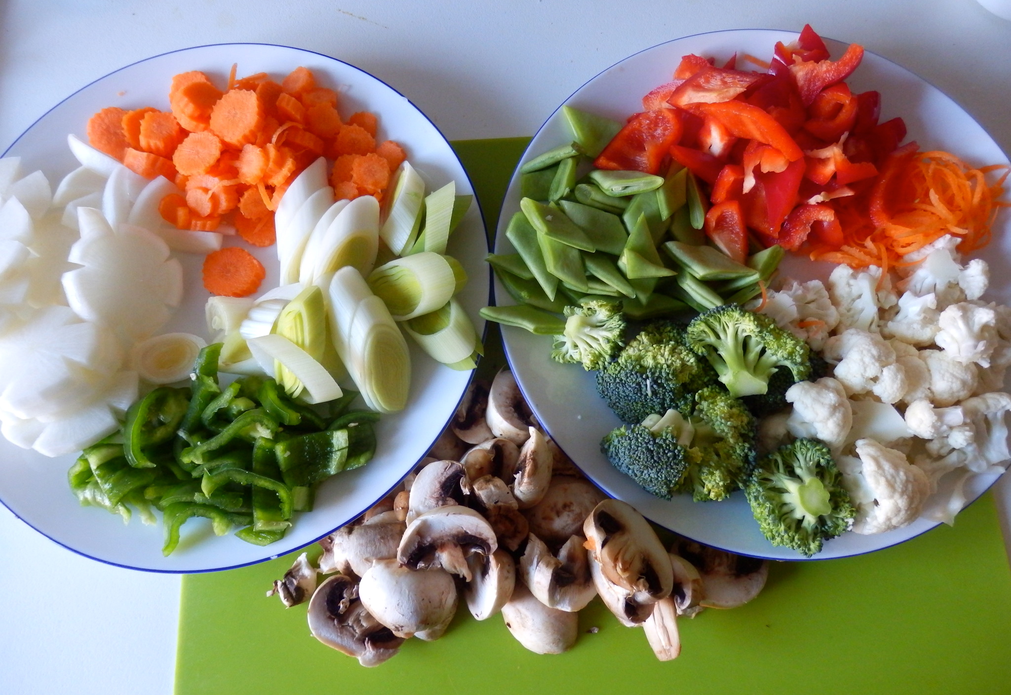 - Coloca en un plato las verduras cortadas por el orden en que se van a cocinar.
