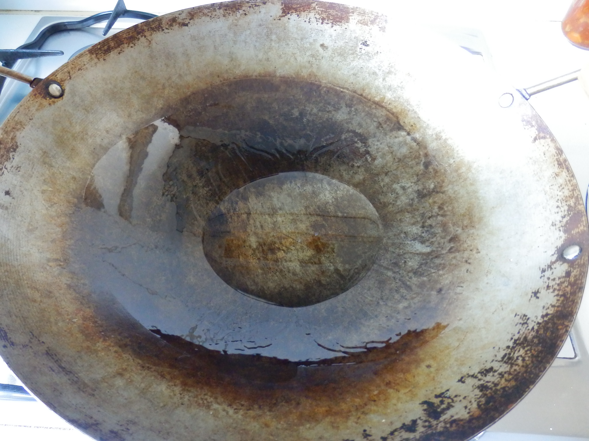 - En un wok calienta el aceite y baña las paredes con él para engrasar bien el wok.