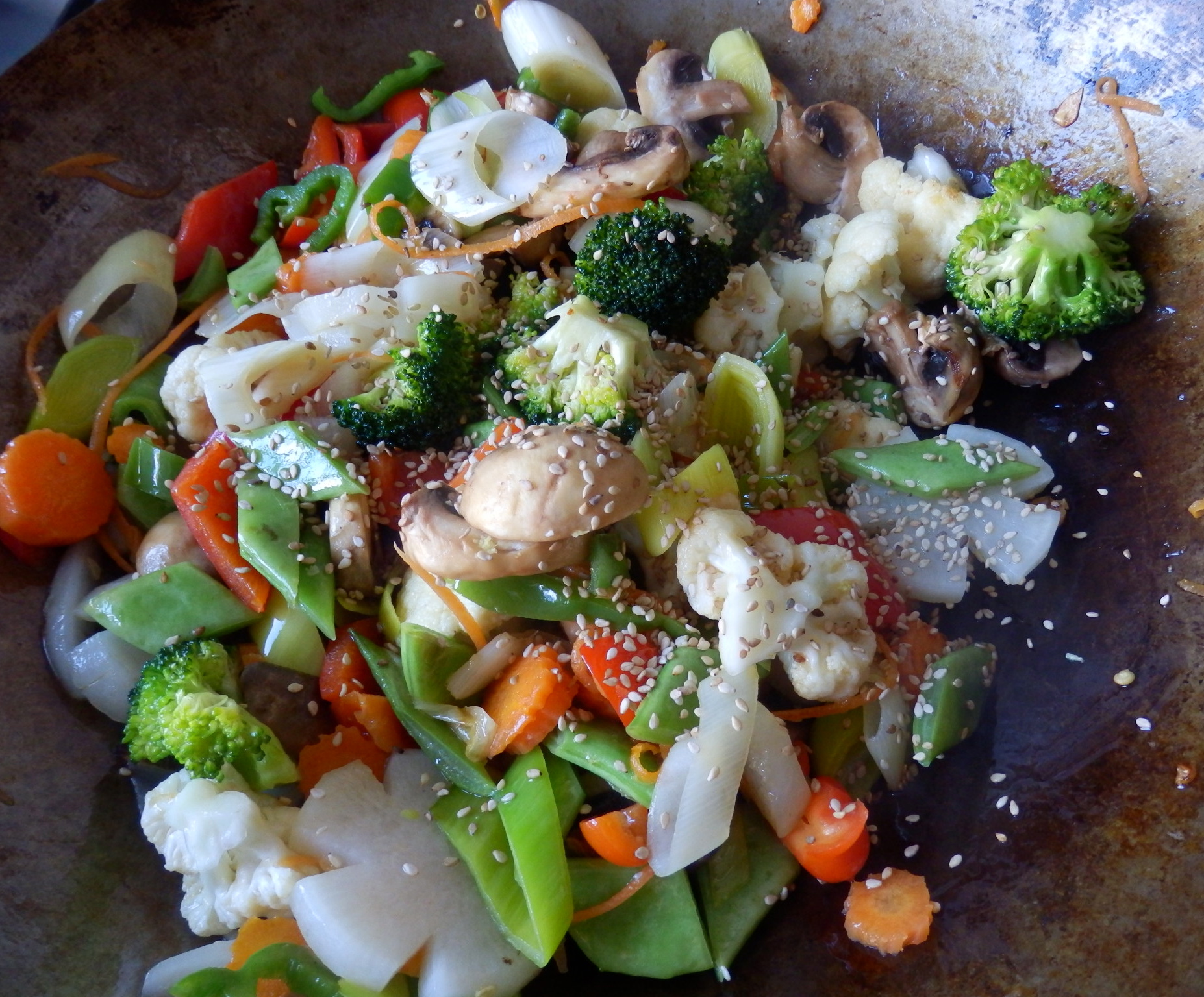 - Cuando termines con las veduras, añade el sésamo y rehoga unos segundos.
