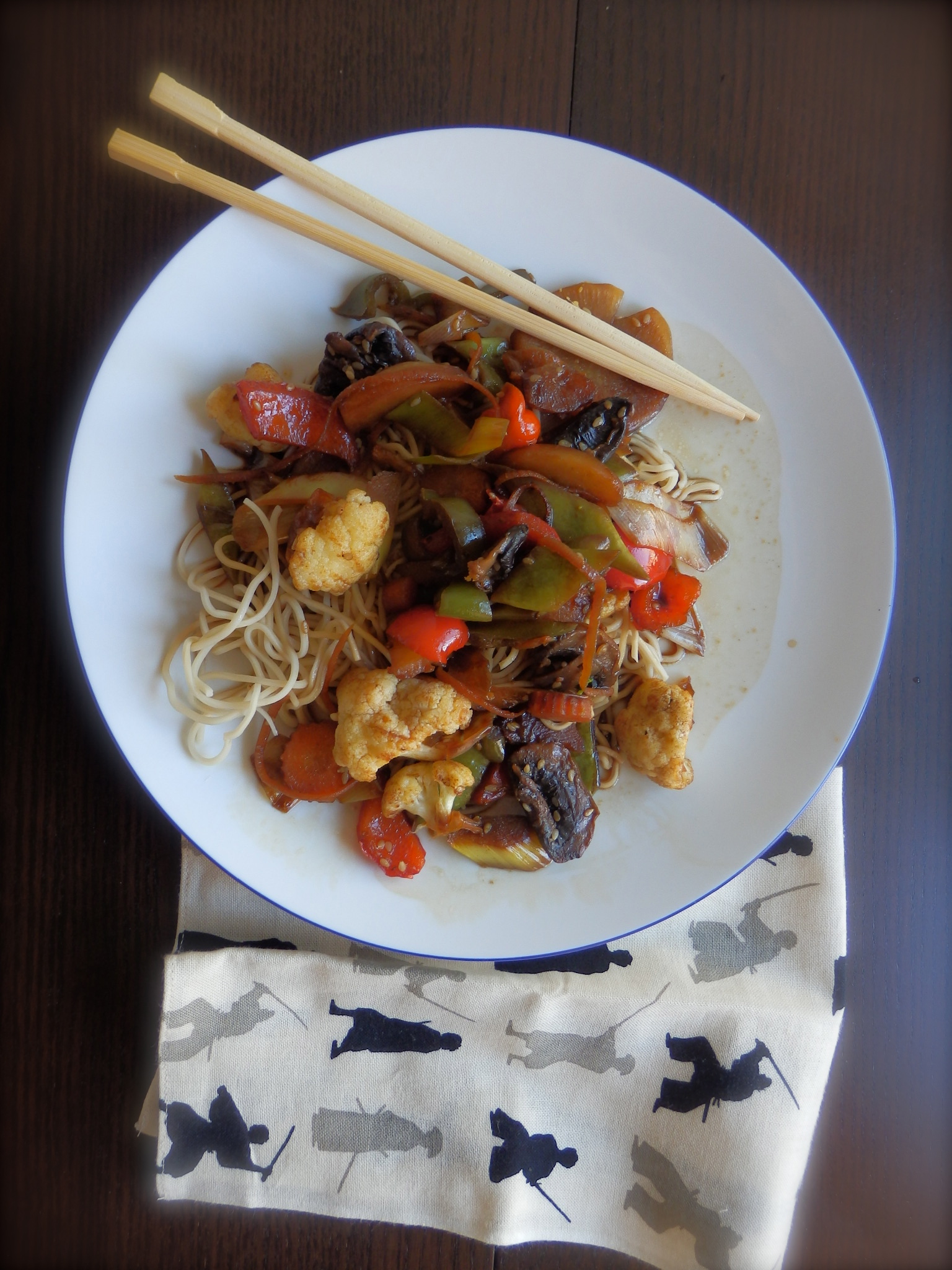 Nunca habíamos llegado tan lejos en este blog. Nada menos que China, ahí es nada. Aunque creo que por allá las verduras no se parecen en nada a este platito tan lleno de color y de sabores. Pero la intención es lo que cuenta y el tipo de cocción que traemos hoy sí que es plenamente oriental. En lugar de hacerlo a la lumbre de leña en la calle, como parece que suelen hacer en Shangai y en Pekin, pues lo hacemos en la cocina de nuestro hogar, menos exótica pero más segura y eficaz.