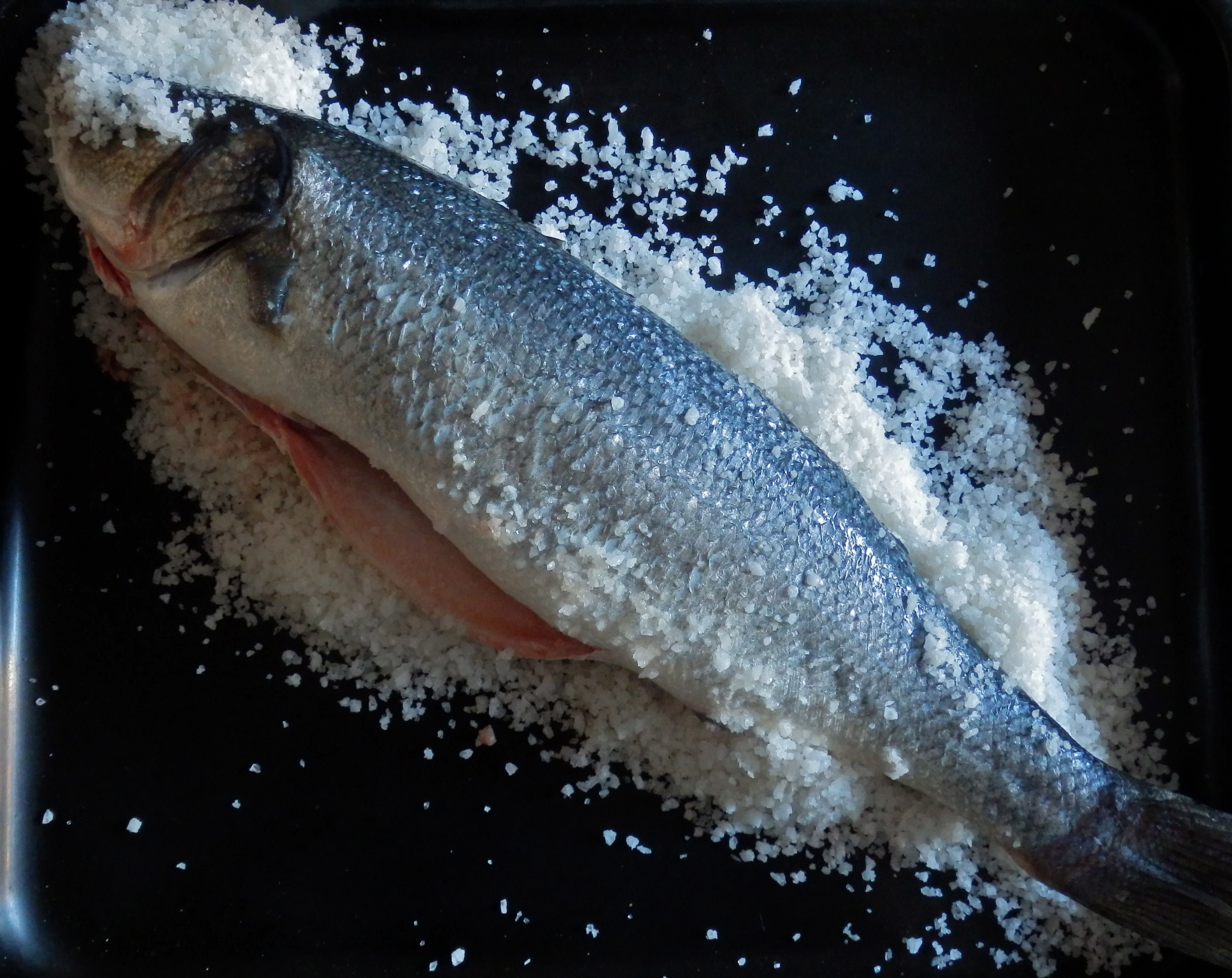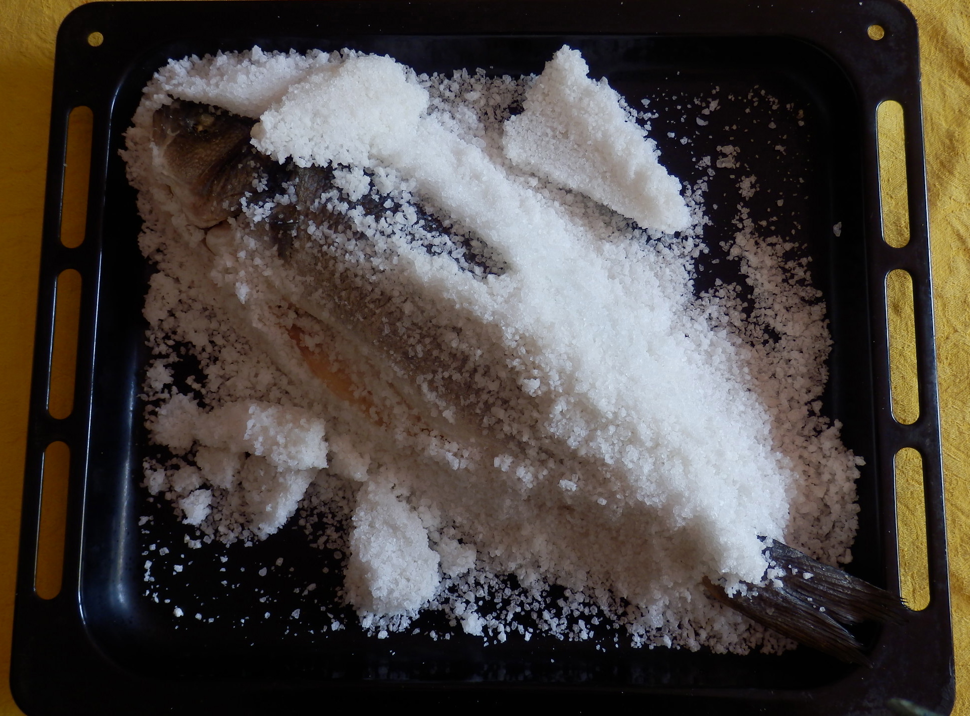 - 2kg de sal gruesa (lo suficiente para enterrar el pescado)