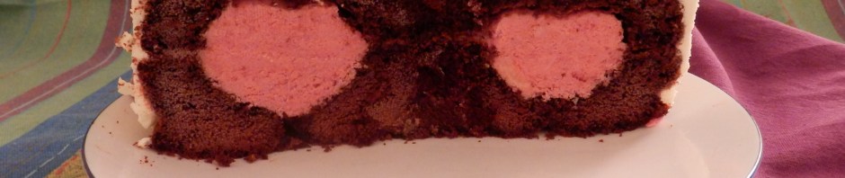 Para ponerlo bonito y cursi, he utilizado un molde de Wilton que deja el relleno en forma de corazón. Este molde fue una de esas insensateces que te llegan directas al corazón cuando las ves y cuando las tienes en casa te arrepientes de tanto romanticismo porque no cabe en ningún sitio. Pero de vez en cuando lo saco del armario y voy derritiendo corazones cuando reparto las porciones.