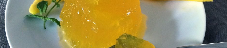 Buscando mi relleno preferido para los macarons (algún día caerá la receta, sin duda), encontré pasta de mango, que no es sino mango deshidratado y hecho conserva. El maravilloso frasquito que llegó por correo (aquí te lo traen en un día, son bárbaros) me dio para rellenar pastas, reforzar el helado y dar un toque maestro al yogur. Así que cuando este verano me dio por doctorarme en gelatinas, pensé que podía hacer una con mi sabor preferido. Éste el resultado.